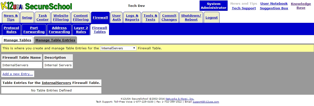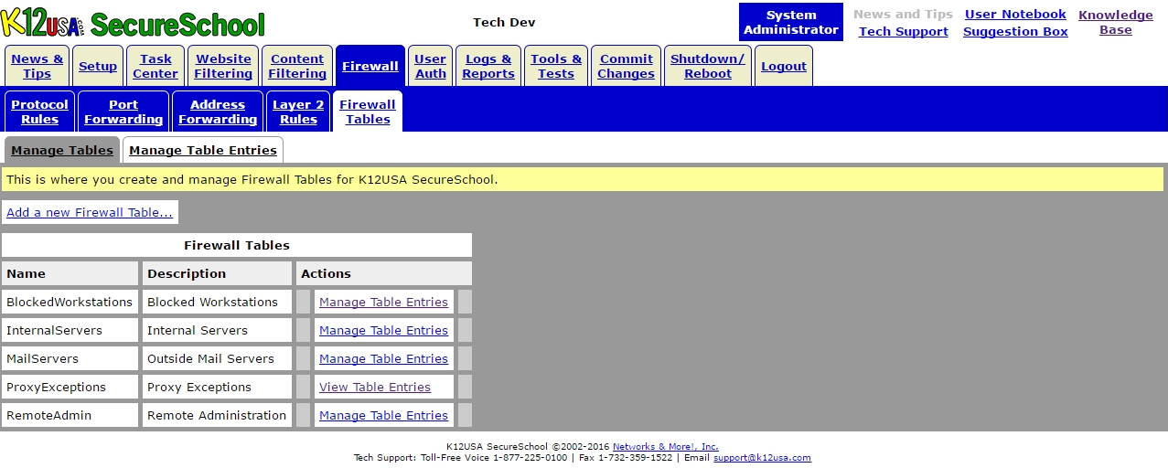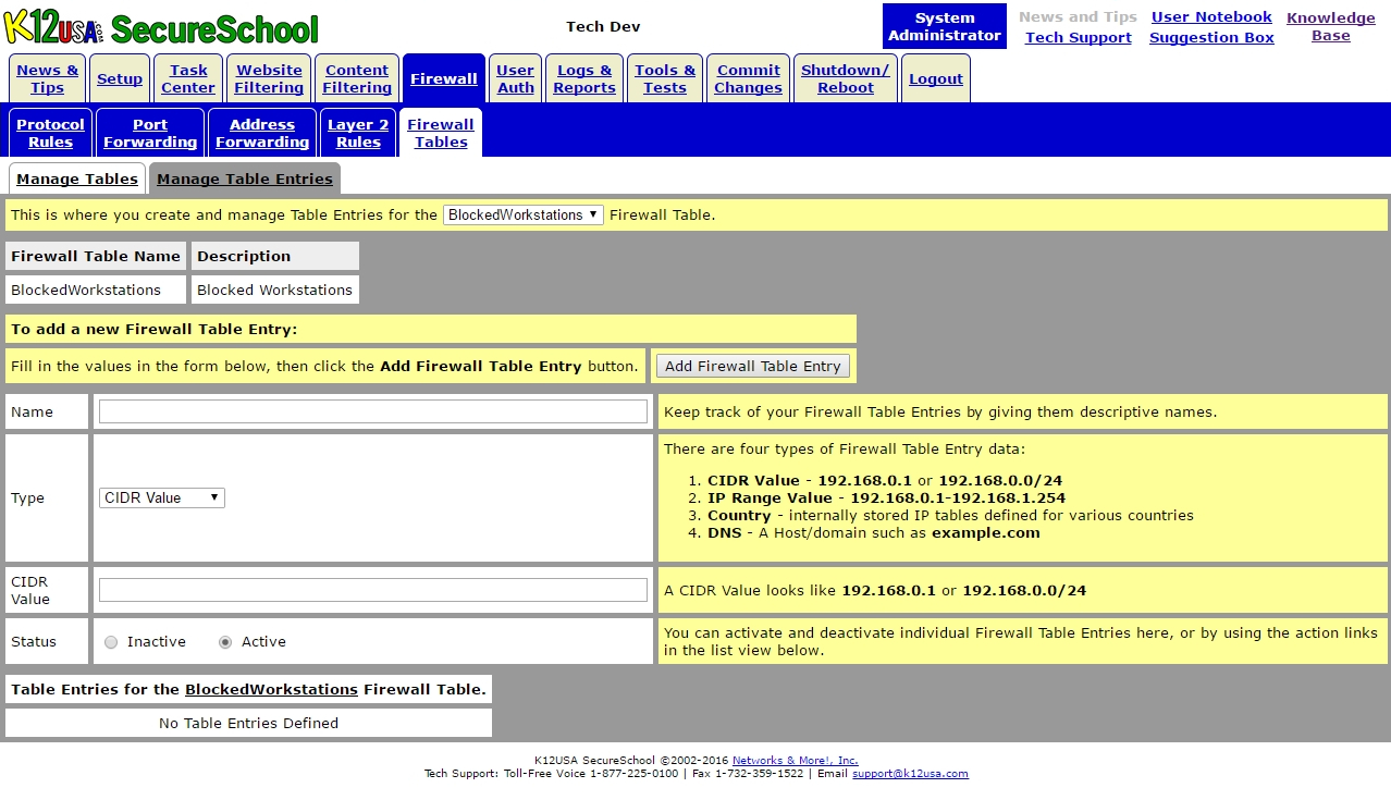 Login to SecureSchool Web Interface > Firewall > Firewall Tables