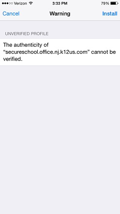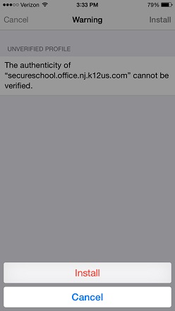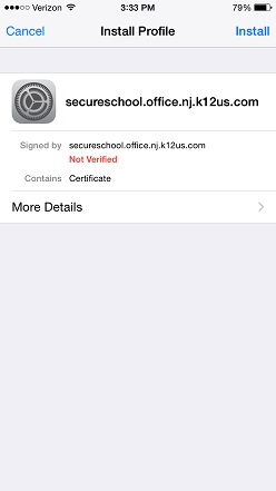 Either open the Safari web browser to the URL of the SecureSchool appliance SSL certificate page (ex http://192.168.1.1/ssl) or email the “ss_cacert.pem.crt” to an account then can be opened on the IOS device.