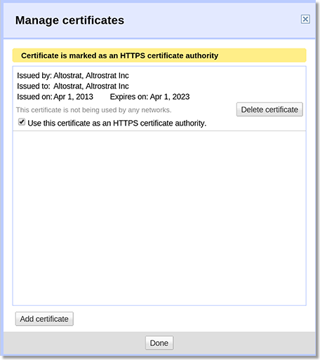 IMPORTANT – MUST CHECK “Use this certificate as an HTTPS certificate authority”