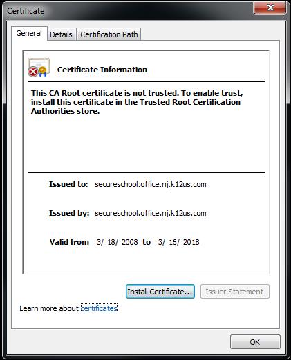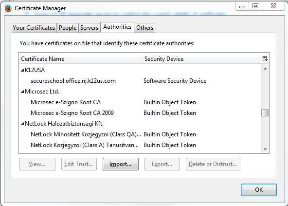 Click “OK” when done and then scroll down until you see K12USA to verify that certificate is installed correctly.