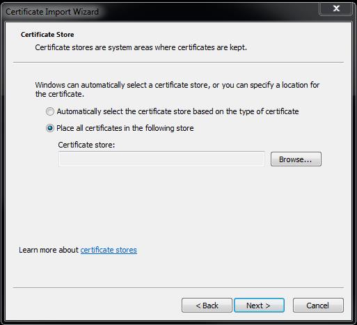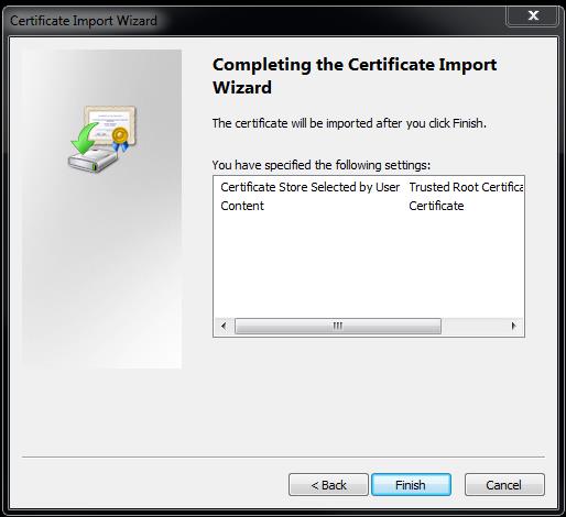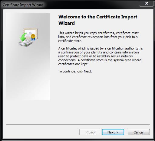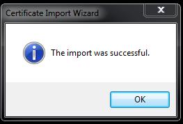 Click Import and follow the steps in the Certificate Import Wizard to import the certificates.