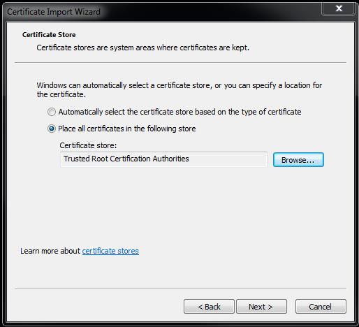 Confirm that “Trusted Root Certification Authorities” is selected and click Next.