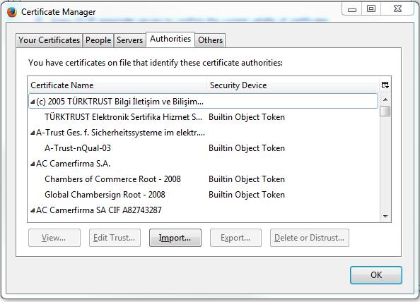 Click on “Import”, then locate the “ss_cacert.pem.crt” file on your computer
