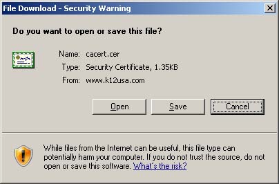 1. Click here to download the K12USA Root CA Certificate from our servers.