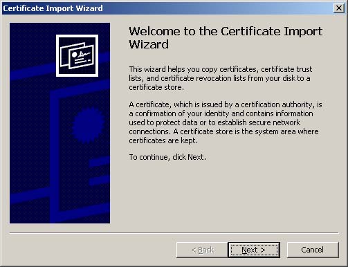 POP3 & SMTP Certificate Installation – Windows 2000 / Windows XP