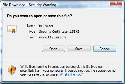 - Click here to download the K12USA Root CA Certificate from our servers.