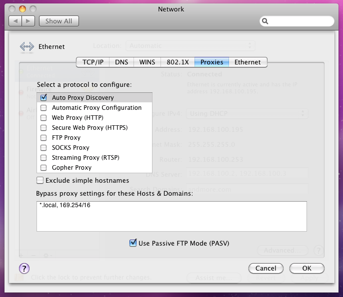 The preferred way to setup proxies on a network is using Proxy Auto Detect. Before you continue with these directions, you should follow the directions at Proxy Auto Detect (WPAD) to configure your network to support Proxy Auto Detect. Once that is done, perform these steps to configure your OS X workstation / server: