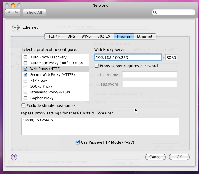 These instructions tell you how to configure a Macintosh computer running OS X with proxy settings. This article covers both manual and automatically detecting settings.